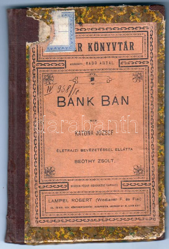 Katona József: Bánk bán. Budapest É.N. Lampel Róbert Könyvkereskedés. ... https://www.darabanth.com/de/180-Fernauktion/180.0/Andere-Sammelgebiete/Bucher-Sonstige-Raritaten~400036/Katona-Jozsef-Bank-ban-Budapest-EN-Lampel-Robert-Konyvkereskedes-Kisebb-szakadasok-a-bo~II637799