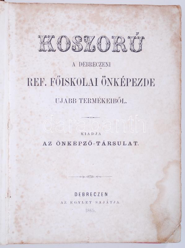Koszorú a Debreczeni Ref. Főiskolai Önképezde ujabb termékeiből. Kiadja az Önképző-Társulat.