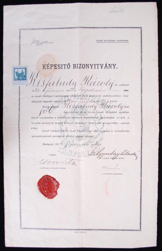 1914 Vasúti tisztképző tanfolyam vizsgabizonyítvány https://www.darabanth.com/de/180-Fernauktion/180.0/Andere-Sammelgebiete/Dokument~400014/1914-Vasuti-tisztkepzo-tanfolyam-vizsgabizonyitvany~II640851
