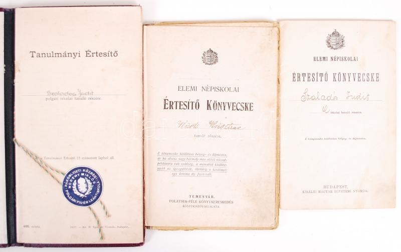1915-1937 2db Elemi népiskolai és 1db polgári iskolai értesítő könyvec... https://www.darabanth.com/de/180-Fernauktion/180.0/Andere-Sammelgebiete/Dokument~400014/1915-1937-2db-Elemi-nepiskolai-es-1db-polgari-iskolai-ertesito-konyvecske~II641804