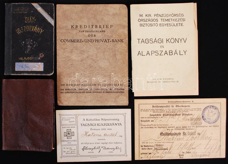 Beschreibung: Érdekes igazolványok és nyomtatványok, összesen 6 db