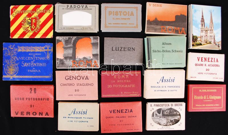 Beschreibung: 17 db háború előtti városképes fényképfüzet, leporello