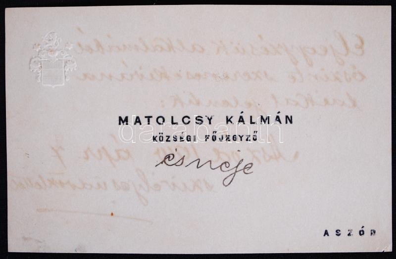 1910 Az aszódi főjegyző címeres névjegykártyája eljegyzési jókívánsága... https://www.darabanth.com/de/180-Fernauktion/180.0/Andere-Sammelgebiete/Drucksachen~400025/1910-Az-aszodi-fojegyzo-cimeres-nevjegykartyaja-eljegyzesi-jokivansagaival~II641817