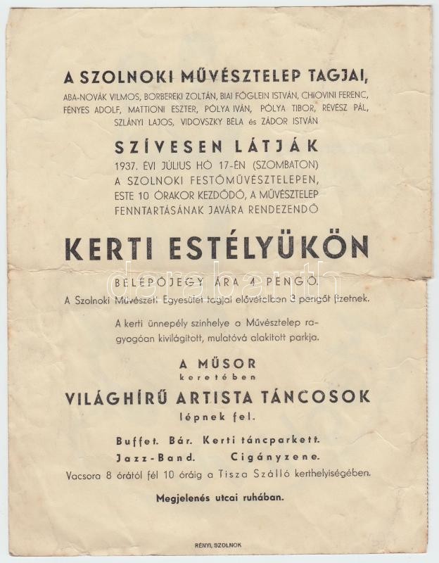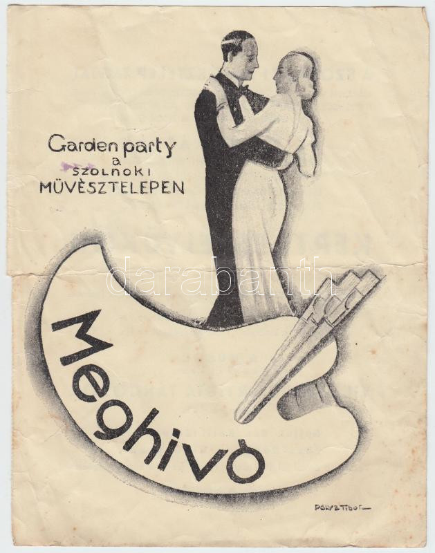 1937 Meghívó a szolnoki művésztelepen rendezett garden partyra. s: Pól... https://www.darabanth.com/de/180-Fernauktion/180.0/Andere-Sammelgebiete/Drucksachen~400025/1937-Meghivo-a-szolnoki-muvesztelepen-rendezett-garden-partyra-s-Polya-Tibor~II639090
