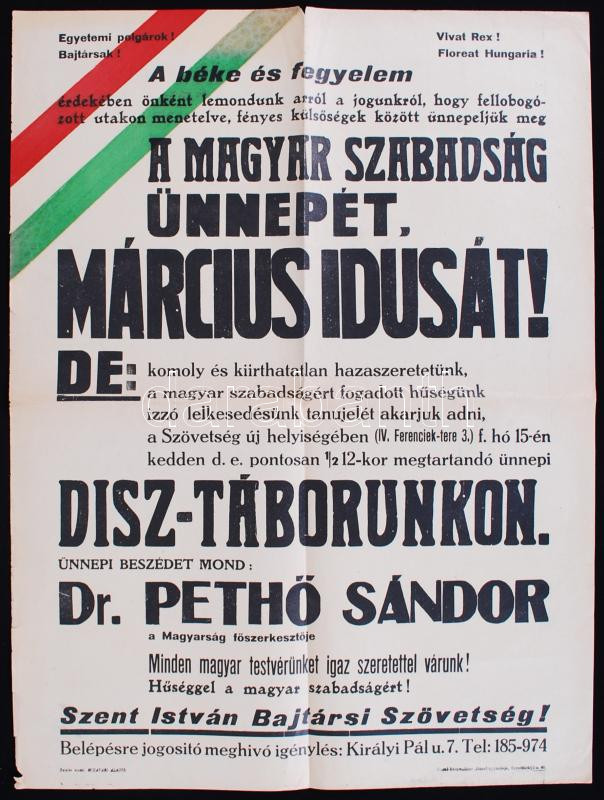 cca 1938 A Szent István Bajtársi Szövetség 1848-as ünnepségre meghívó ... https://www.darabanth.com/de/180-Fernauktion/180.0/Andere-Sammelgebiete/Drucksachen~400025/cca-1938-A-Szent-Istvan-Bajtarsi-Szovetseg-1848-as-unnepsegre-meghivo-plakatja-40x60-cm~II639586