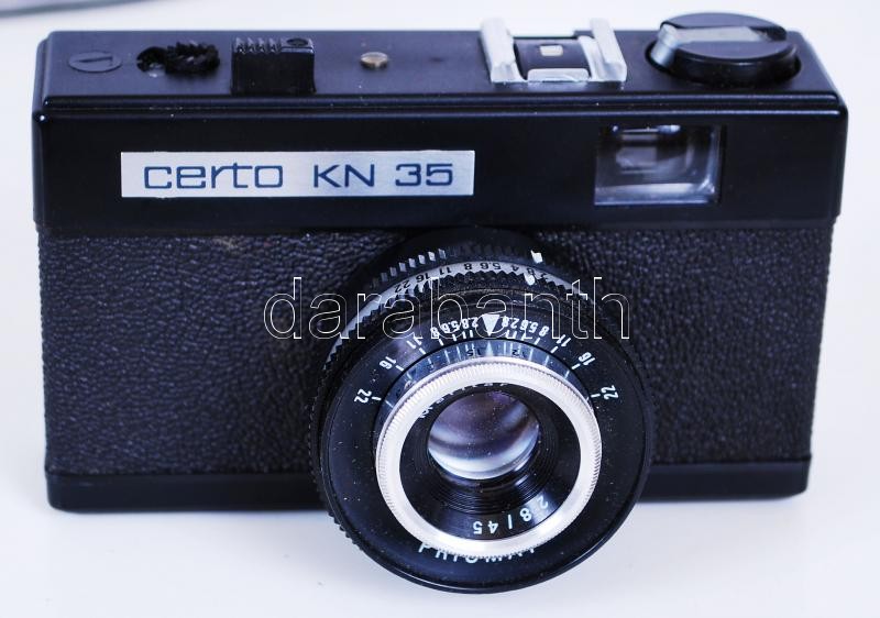 Certo KN 35 fényképezőgép Meritar 2,8/45cm objektívvel, Ganko FE 26 vakuval és Leningrad-4 fénymérővel, eredeti tokjában /