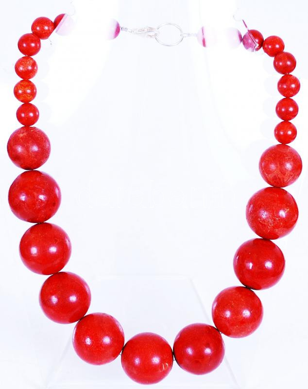 Beschreibung: Korall nyaklánc hatalmas szemekből, ezüst (Ag) szerelékkel /