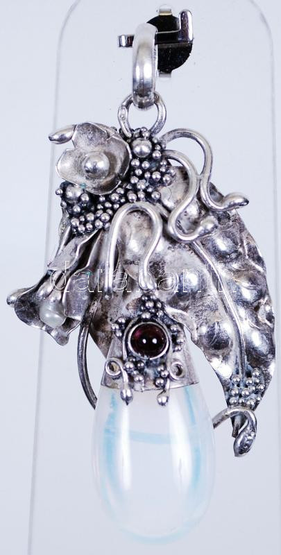 Szecessziós stílusú ezüst (Ag) medál gránáttal és szintetikus opállal /