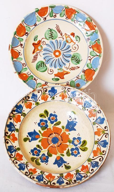 2 db népi fazekas dísztányér, kézzel festett, jelzés nélkül, apró máz... https://www.darabanth.com/de/180-Fernauktion/180.0/Andere-Sammelgebiete/Keramiken~400006/2-db-nepi-fazekas-disztanyer-kezzel-festett-jelzes-nelkul-apro-mazhibakkal-d19-21-~II637632