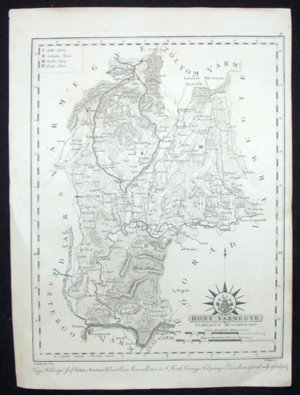 Beschreibung: 1811 Hont vármegye térképe Görög Demeter Magyar Átlás-ából. Rézmetszet. /