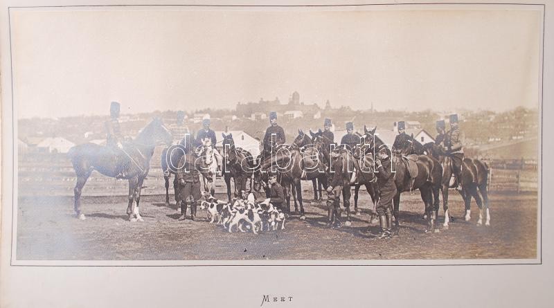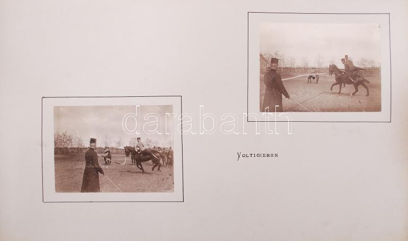 1907-1908 "Equitation zu Czernowitz", fotóalbum a csernyivci k.u.k. katonai lovasiskolából, az évfolyam tagjairól, gyakorlatokról, humoros beállításokról készült képekkel, félvászon kötésben, aranyozott bőr kötéstáblákkal /