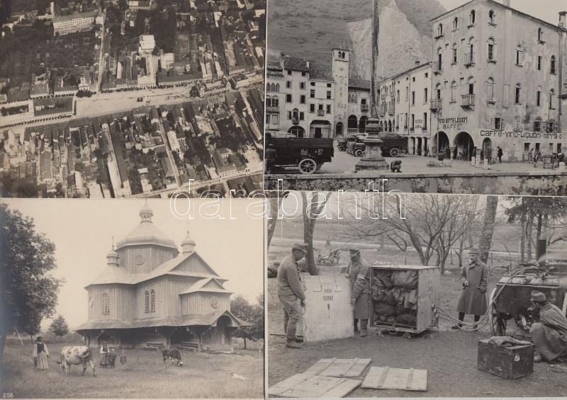 Beschreibung: 1914-1918 10db I. világháborús katonai felvétel különböző hadszínterekről, különféle méretben