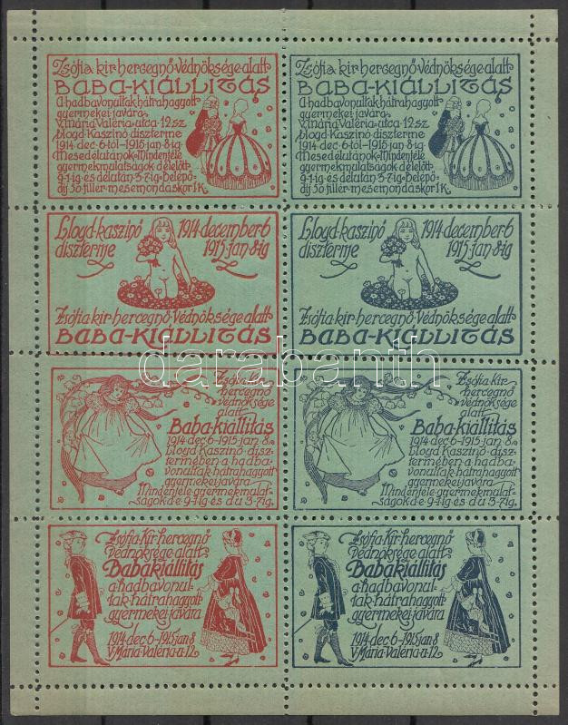 1914-1915 Babakiállítás kisív zöld papíron https://www.darabanth.com/de/180-Fernauktion/180.0/Andere-Sammelgebiete/Paraphilatelie~400012/1914-1915-Babakiallitas-kisiv-zold-papiron~II639290
