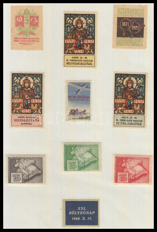 Beschreibung: 1920-1948 10 db klf levélzáró, bélygkiállítás, bélyegnap