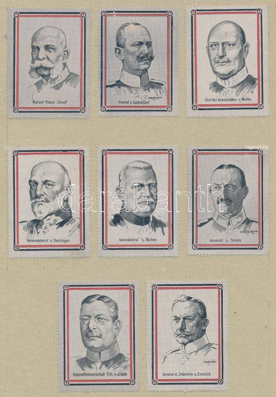 Ferenc József és Tábornokai 8 klf német levélzáró https://www.darabanth.com/de/180-Fernauktion/180.0/Andere-Sammelgebiete/Paraphilatelie~400012/Ferenc-Jozsef-es-Tabornokai-8-klf-nemet-levelzaro~II639587