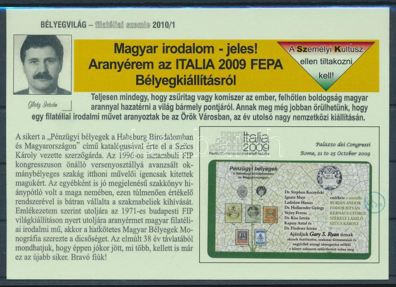 Beschreibung: Magyar irodalom jeles! okmánybélyeg emléklapon Hátoldalon megjegyzéssel