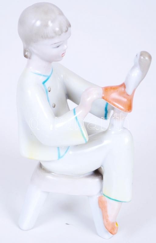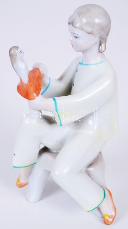 Girl playing with doll, hand painted Holloházi porcelain figure, 13x7x7cm