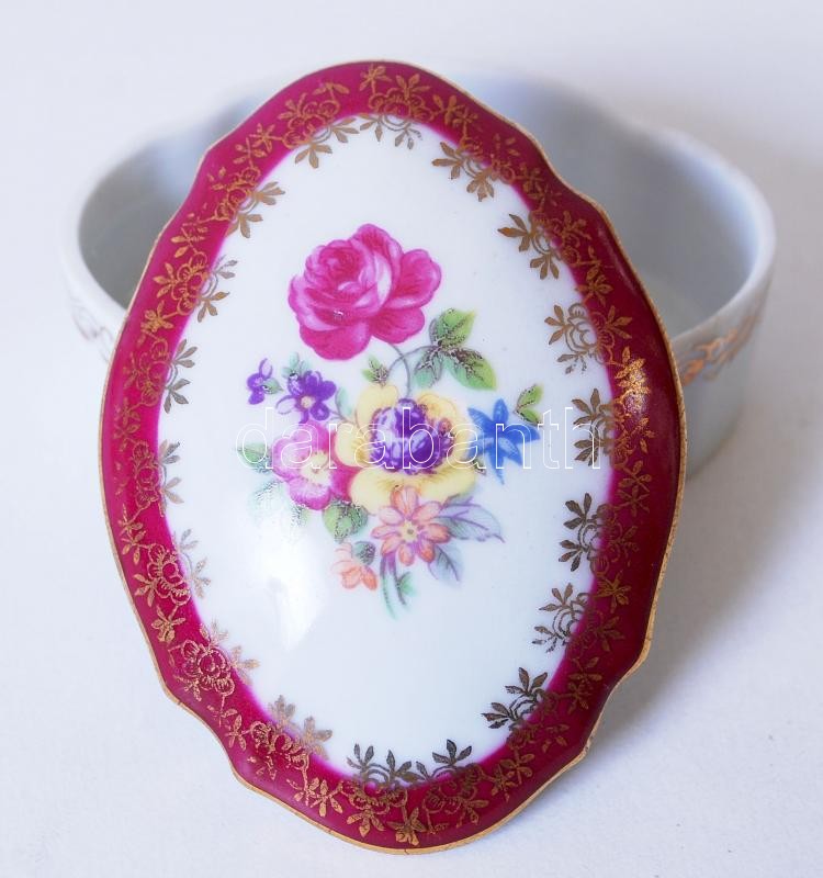 Beschreibung: Virágokkal díszített régi német porcelán ékszeres doboz /