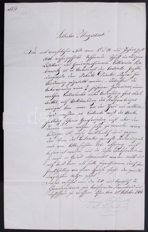 Beschreibung: 1844 A Budai királyi egyetemi nyomda igazgatójának Tressinszky Ferencnek saját kézzel aláírt levele, viaszpecséttel