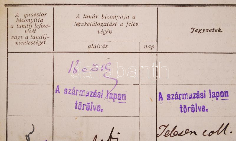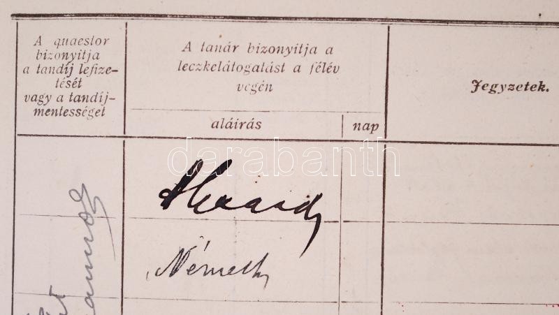 1902-1903 Leckekönyv a Királyi Magyar Tudományegyetem Bölcsészettudományi Karáról számos neves professzor aláírásával, úgymint Négyessy László, Szinnyei József, P. Thewrewk Emil, Lóczy Lajos, etc.