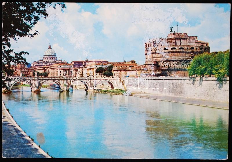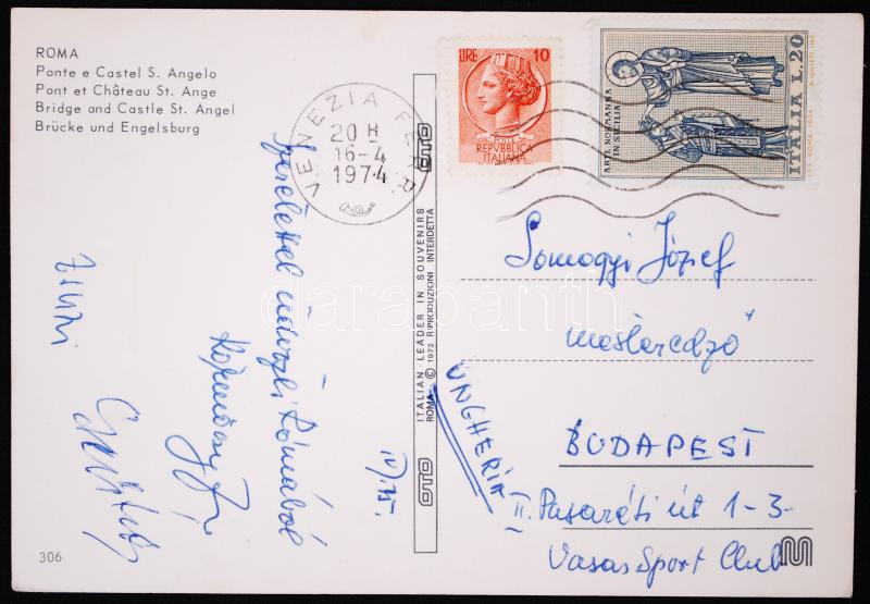 Beschreibung: 1974 Körmöczy Zsuzsa teniszező aláírása Rómából küldött képeslapon