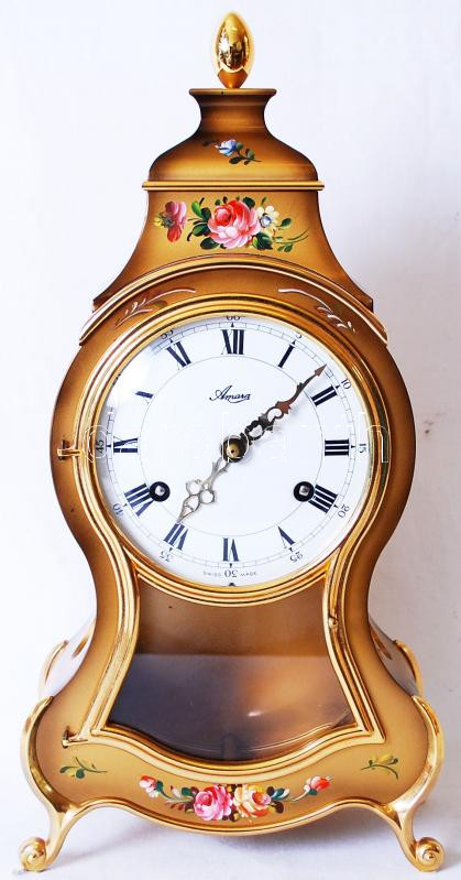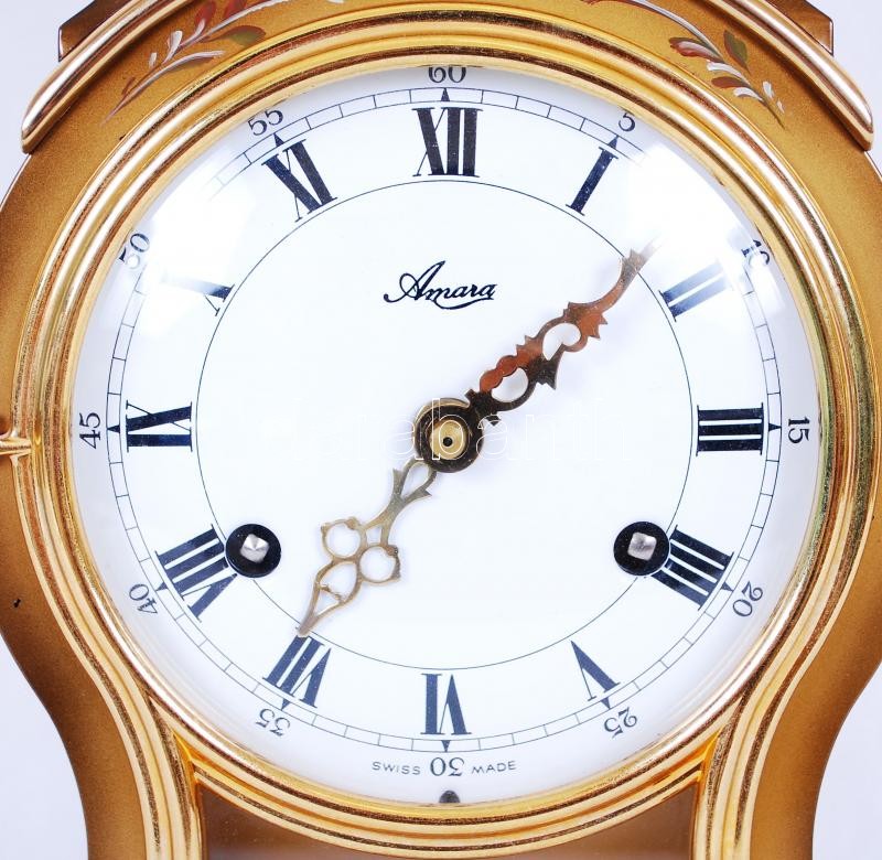 Beschreibung: Amara modern svájci asztali óra, kézzel festett, műanyag, működik, kulccsal és ingával