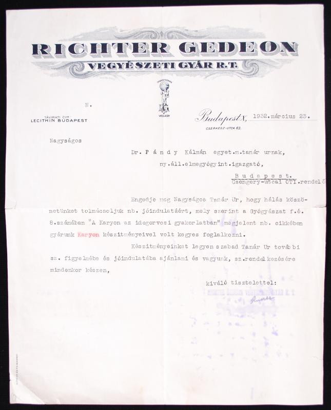 1932 Hivatalos levél Richter Gedeon Vegyészeti Gyár R.t. fejléces papí... https://www.darabanth.com/de/180-Fernauktion/180.0/Andere-Sammelgebiete/Werbungen~400018/1932-Hivatalos-level-Richter-Gedeon-Vegyeszeti-Gyar-Rt-fejleces-papiron-belyegzett-alairC3~II642830