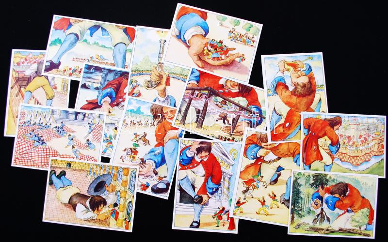 Beschreibung: cca 1930 Guliver utazása 13 db nagyméretű gyűjtőcímke / Collecting cards 13 pieces 14x10 cm