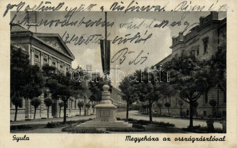 Gyula Megyeháza, Országzászló https://www.darabanth.com/de/180-Fernauktion/180.0/Ansichtskarten/Ungarn~800007/Gyula-Megyehaza-Orszagzaszlo~II638536