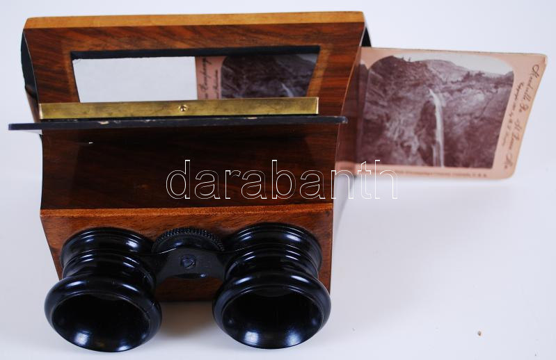 cca 1900 Nagyméretű, fa sztereokép-nézegető állítható lencsével, valamint egy képpel /