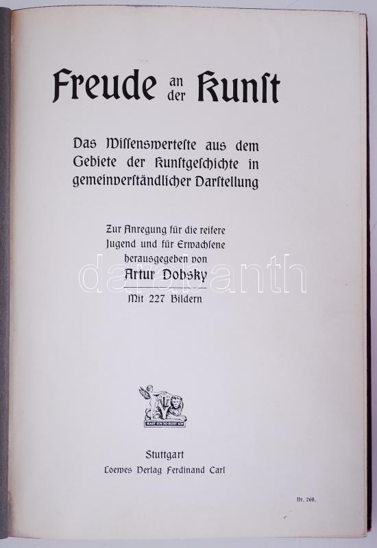 Arthur Dobsky: Freude an Kunst... mit 227 Bildern . Stuttgart 1912. 25... https://www.darabanth.com/de/181-Fernauktion/181.0/Andere-Sammelgebiete/Bucher-Architektur-Kunst~200015/Arthur-Dobsky-Freude-an-Kunst-mit-227-Bildern-Stuttgart-1912-256p-Aranyozott-egeszvaszon-k~II649251