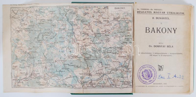 Thirring és Dr. Vigyázó János: Részletes magyar útikalauzok: Bakony. Budapest 1930. Térképpel. Új egészvászon kötésben 420p.