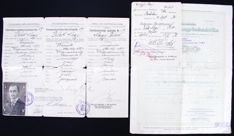 Beschreibung: 1919 Fényképes útlevél (szakadt) és osztrák banki papírok
