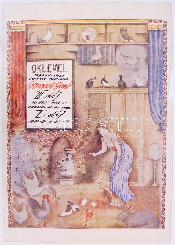 1981 Galambászati oklevél 2 db, 35×50 cm, kis szakadásokkal https://www.darabanth.com/de/181-Fernauktion/181.0/Andere-Sammelgebiete/Dokument~200034/1981-Galambaszati-oklevel-2-db-35C39750-cm-kis-szakadasokkal~II616295