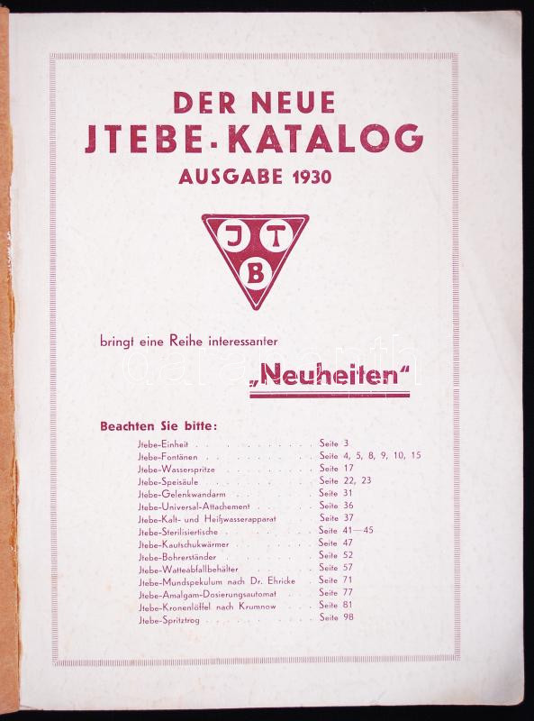 1930 Jtebe-Katalog. Német nyelvű katalógus fogorvosi eszközökről /