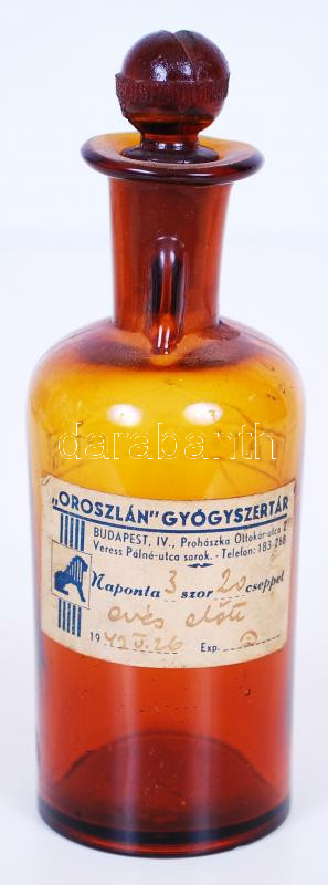 cca 1900 Bp. IV. ker., "Oroszlán" Gyógyszertár, orvosságos ü... https://www.darabanth.com/de/181-Fernauktion/181.0/Andere-Sammelgebiete/Flohmarkt~1000382/cca-1900-Bp-IV-ker-Oroszlan-Gyogyszertar-orvossagos-uvegcse--3Cbr3EMedicine-bottle-13-~II645593