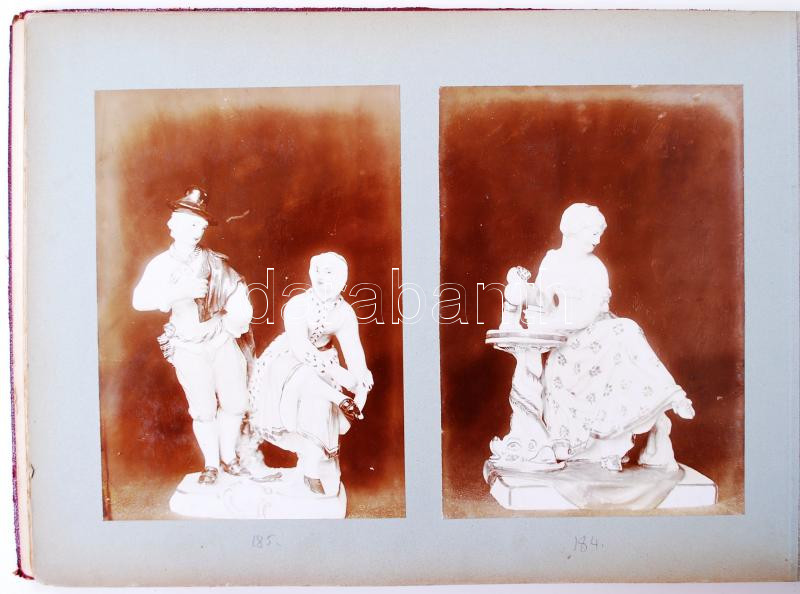 cca 1900 Fotóalbum (valószínűleg árubemutató) régi porcelánokat ábrázoló 59 fényképpel. (Frankental, Höchst, Ludwigsburg, Nimpfenburg, Volkstadt) /
