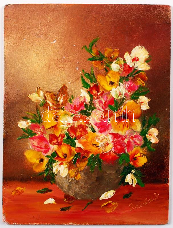 Beschreibung: Heil Edit: Virágcsendélet. Olaj, karton, jelzett, 15×20 cm