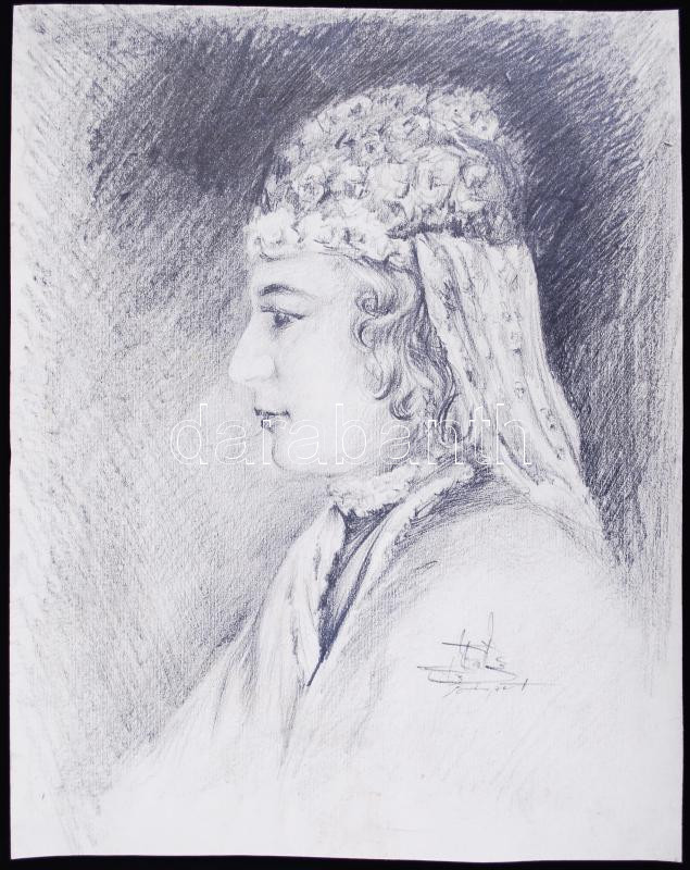 Olvashatatlan jelzéssel: Női fej. Ceruza, papír, 30×24 cm https://www.darabanth.com/de/181-Fernauktion/181.0/Andere-Sammelgebiete/Gemalde-und-Grafiken~200017/Olvashatatlan-jelzessel-Noi-fej-Ceruza-papir-30C39724-cm~II648467