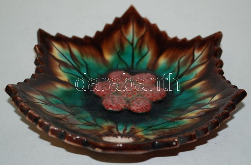Beschreibung: Mezőtúr levél alakú kerámia, jelzett, d:14 cm