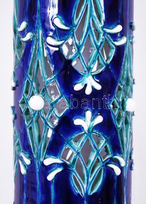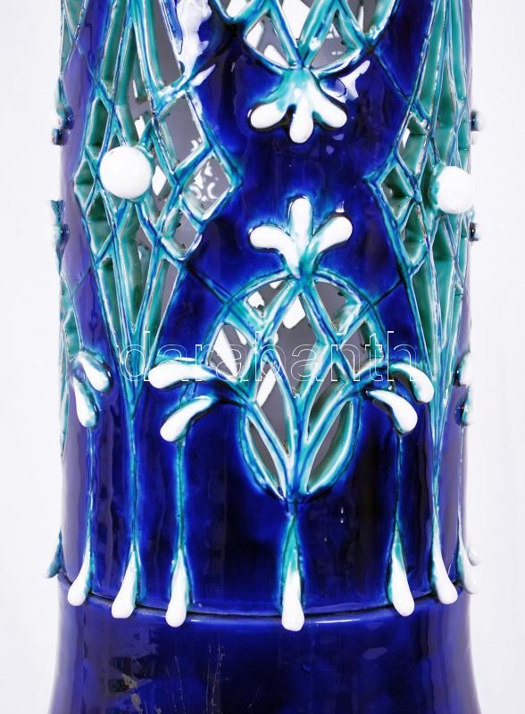 Beschreibung: Morvay Zsuzsa (1946-): Áttört posztamens, mázas kerámia, jelzés nélkül kiállítási darab, hibátlan, m:116 cm !!, d:29 cm /Hand painted ceramics pedestal