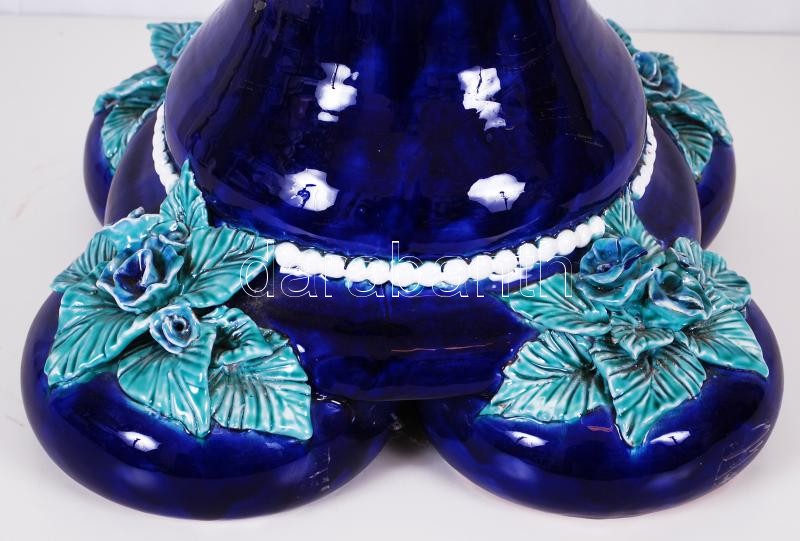Beschreibung: Morvay Zsuzsa (1946-): Virágos posztamens, mázas kerámia, jelzés nélkül kiállítási darab, hibátlan, m:120 cm !!, átmérő alul:45, átmérő felül:28 cm/ Hand painted ceramics pedestal