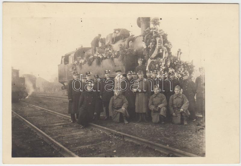 1938 Bevonulás Kárpátaljára; Magyar katonákat szállító virágos vonat C... https://www.darabanth.com/de/181-Fernauktion/181.0/Andere-Sammelgebiete/Militaria~200003/1938-Bevonulas-Karpataljara-Magyar-katonakat-szallito-viragos-vonat-Csap-allomason~II648027