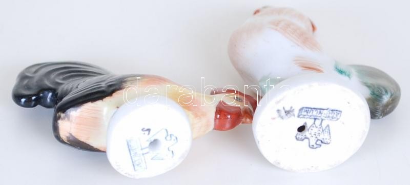 Beschreibung: Aquincum porcelán kakas 2 db, kézzel festett, jelzett, hibátlan, m:5 és 7 cm /