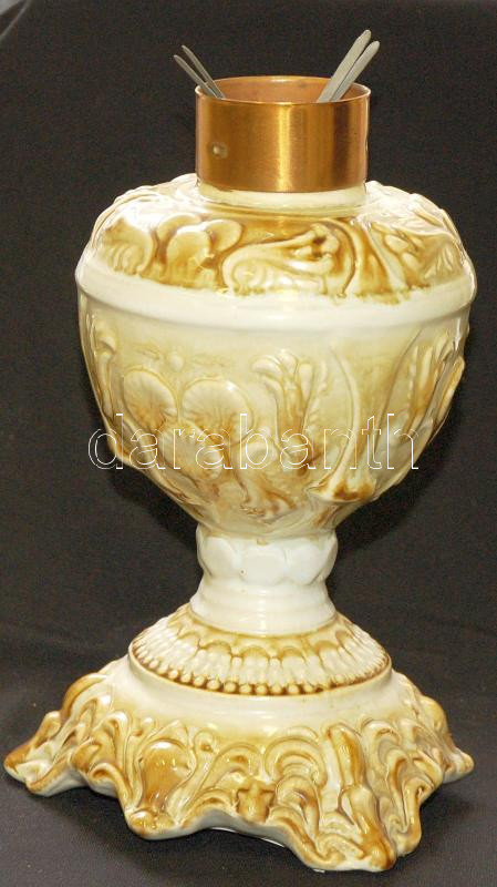 Beschreibung: Festett porcelán-fajansz asztali lámpa /