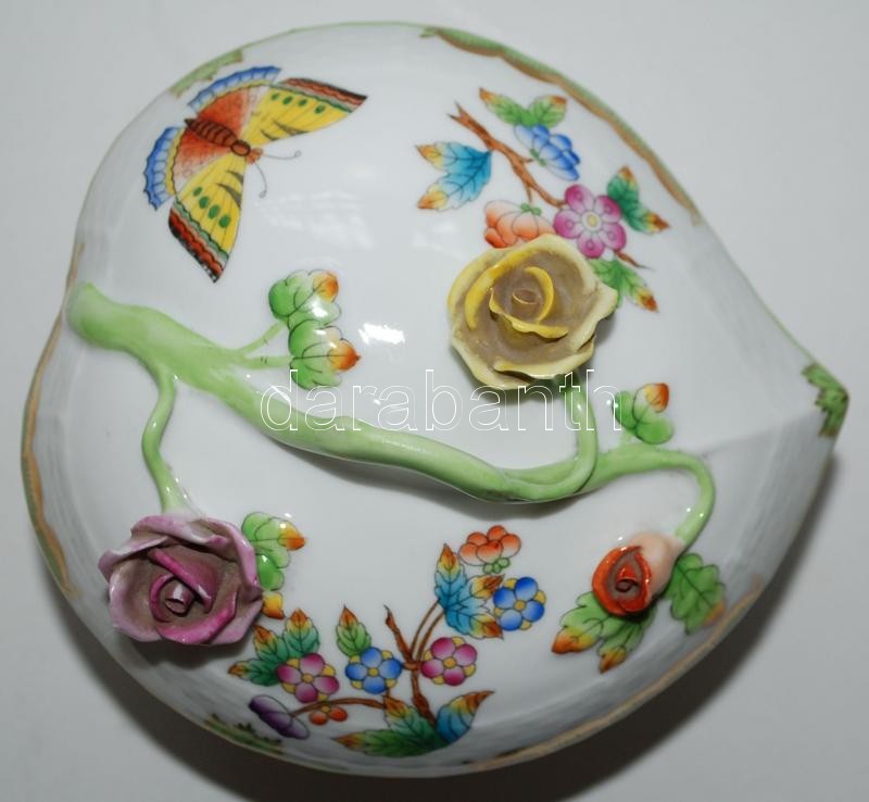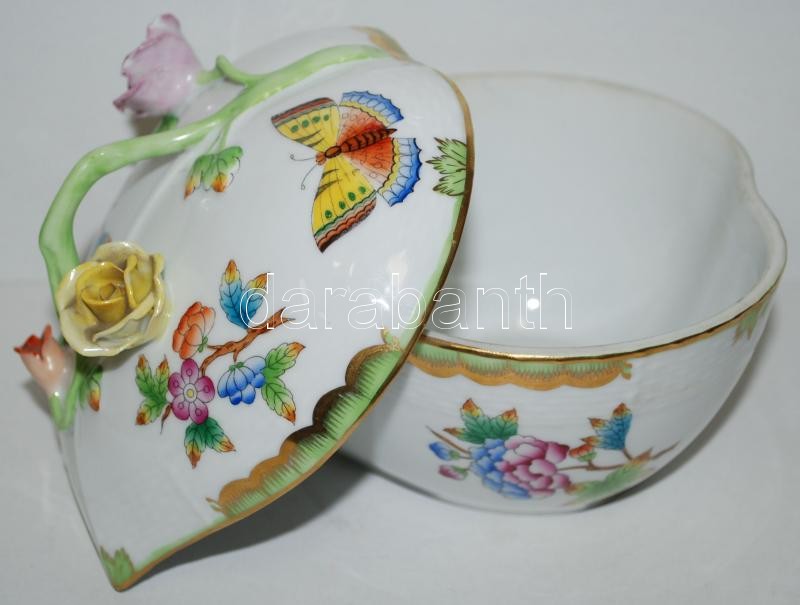 Herendi Viktória mintás bonbonier, kézzel festett, áttört, 1 mm.-es le... https://www.darabanth.com/de/181-Fernauktion/181.0/Andere-Sammelgebiete/Porzellan~200026/Herendi-Viktoria-mintas-bonbonier-kezzel-festett-attort-1-mm-es-lepattanasokkal-a-rozsak~II586218