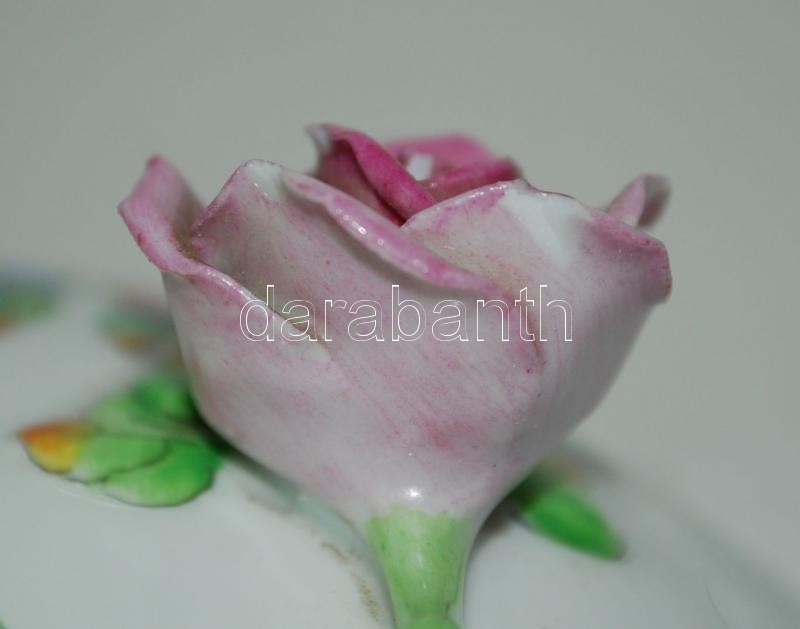 Beschreibung: Herendi Viktória mintás bonbonier, kézzel festett, áttört, 1 mm.-es lepattanásokkal a rózsákon, m:12 cm, h:14 cm