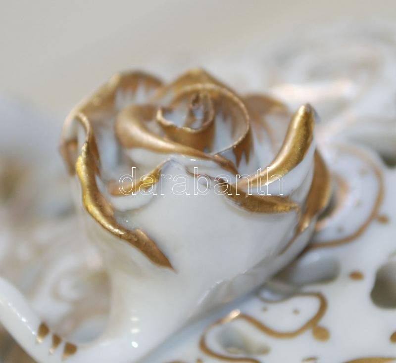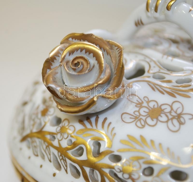 Beschreibung: Herendi bonbonier, kézzel festett, áttört, arany színnel, apró lepattanásokkal, m:9 cm, h:11 cm