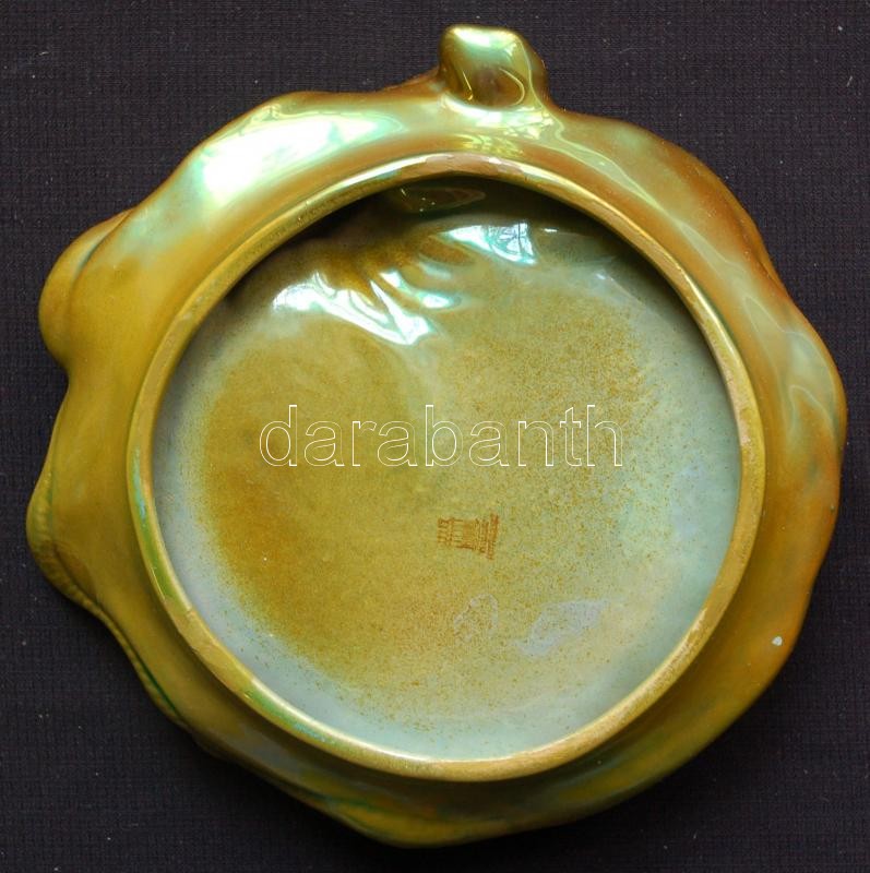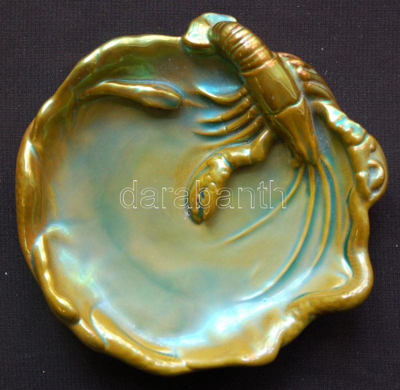 Beschreibung: Jelzett Zsolnay eozin mázas porcelán tál kígyóval és rákkal /