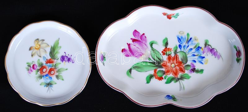 Hand painted tiny Herendi porcelain bowls, d:8 cm, 13×9 cm